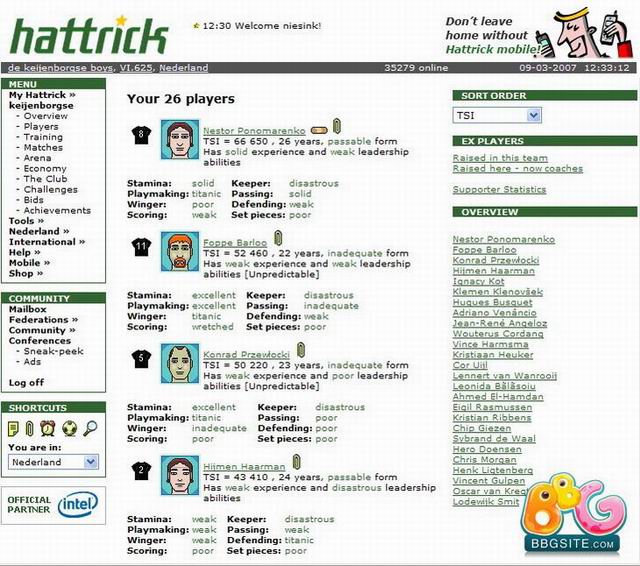 je trouve ce jeu plus souple qu'Hattrick. Par exemple on est jamais forfait alors que dans mes souvenir si on faisait pas sa compo à Hattrick à chaque journée ben paf. La le jeu reprend la compo du dernier match et s'il y a un blessé ou un suspendu il complete la compo.